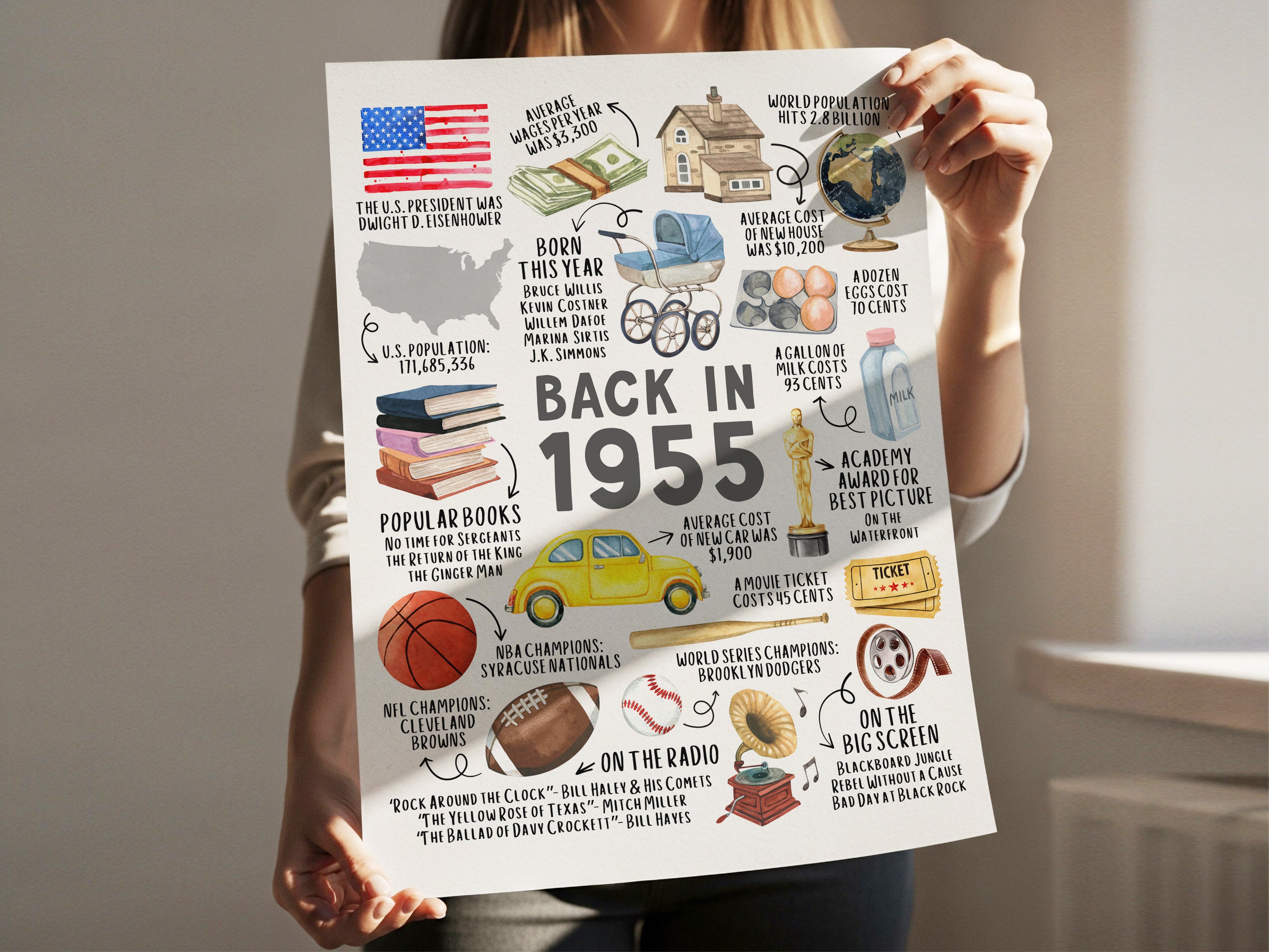 70th Birthday Gift, 70th Birthday Poster Printable, Back in 1955 Fun Facts Party Decoration Sign, Instant Download, IL01 -